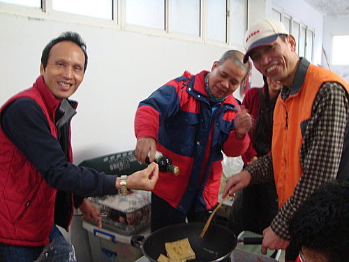 副座和副座嫂還現場揉麵做蔥油餅和蘿蔔糕