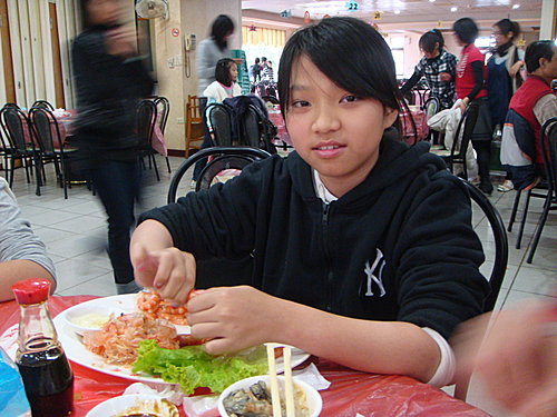 ↑初五中午~海龍園餐廳~小瑜兒剝蝦給大家吃